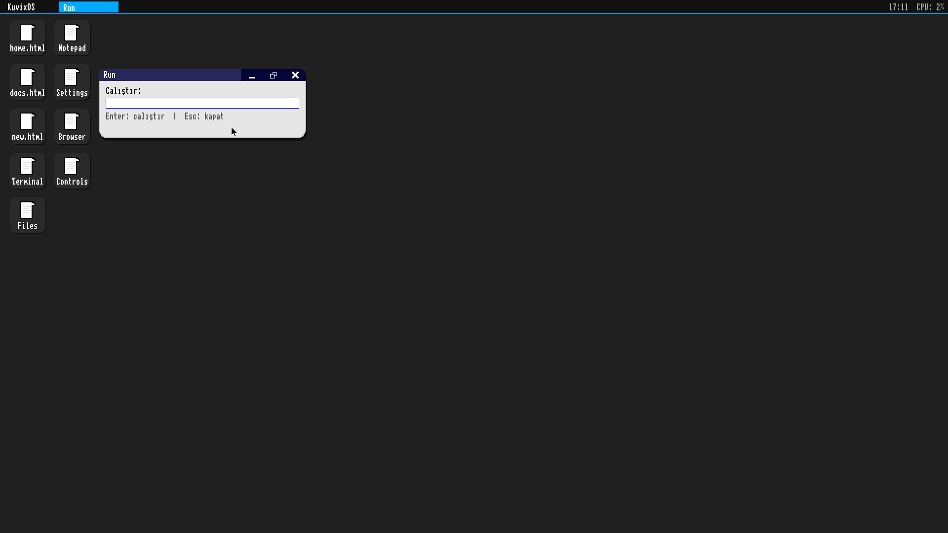 KuvixOS; kendi kernel’i, window manager’ı, UI toolkit’i, VFS katmanı, dosya sistemi deneyleri ve KEF uygulama formatıyla geliştirilen deneysel bir işletim sistemi projesi.